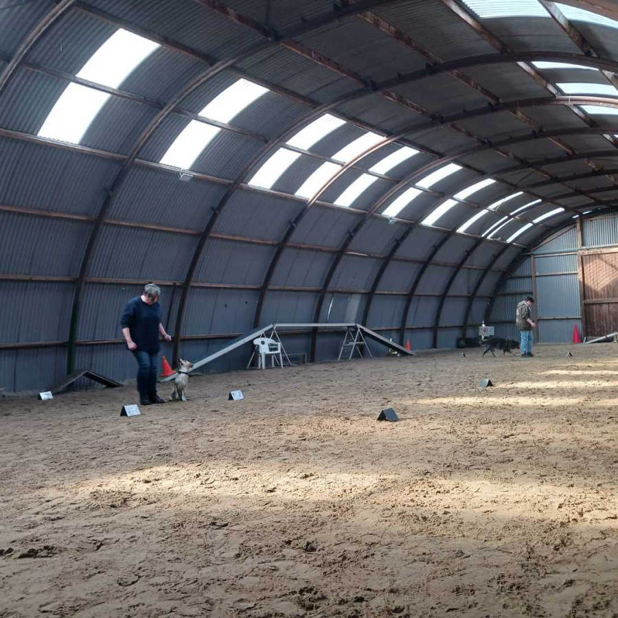 Eingezäunter Hundeplatz und 2 TrainingsHallen